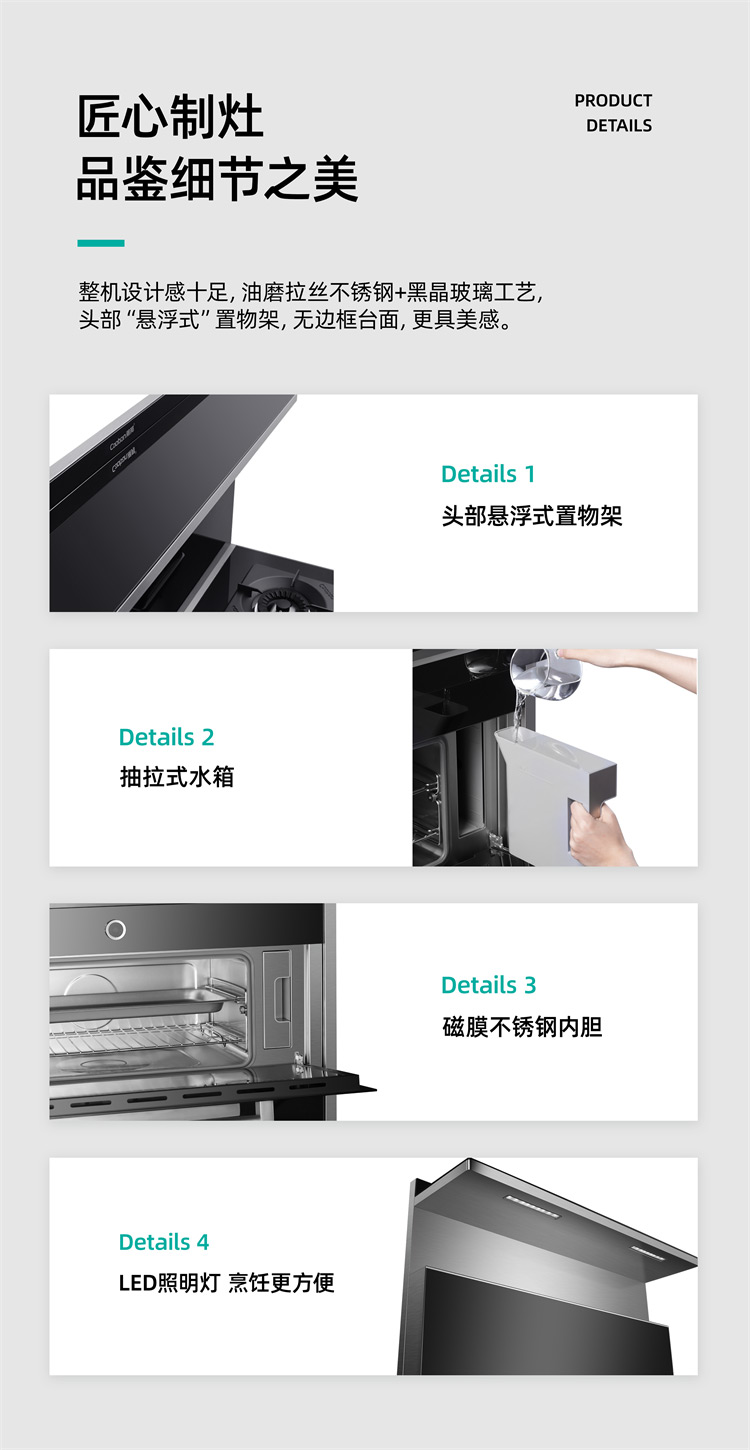蒸烤分層集成灶,邊蒸邊烤,美味加倍,引領(lǐng)蒸烤分層新時(shí)代。