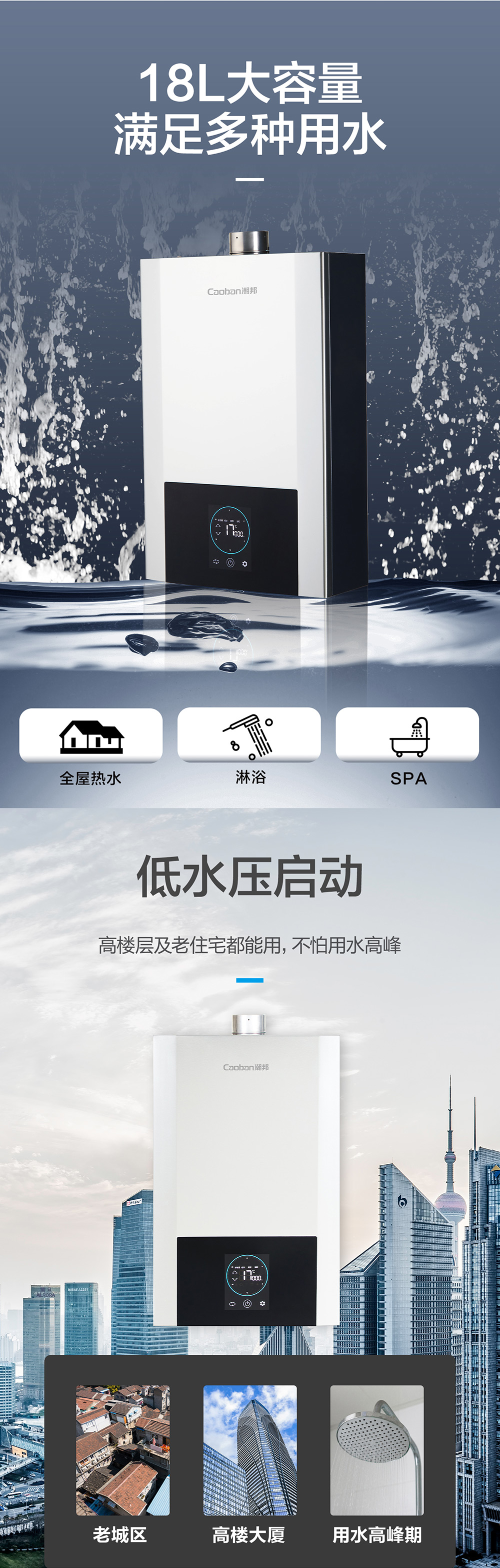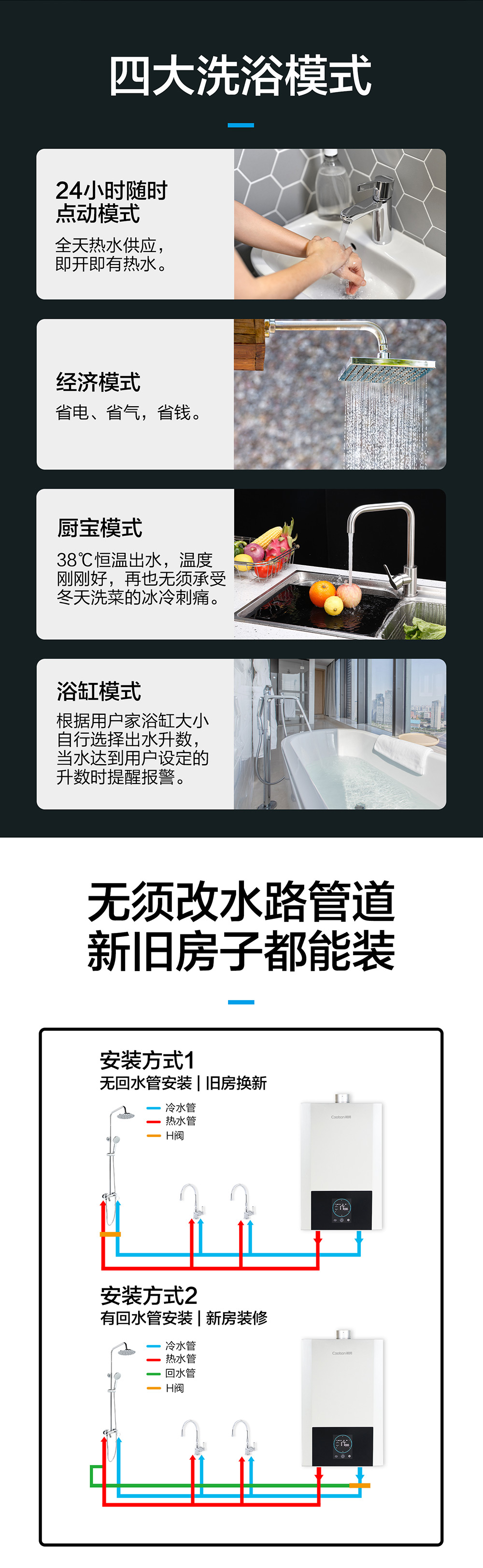 零冷水,智能恒溫,低水壓啟動。